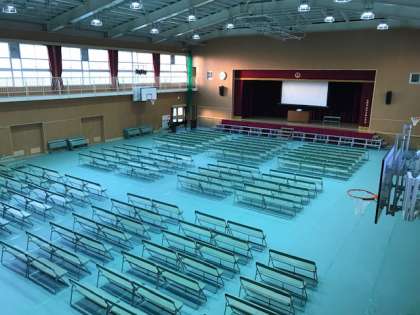 新しい体育館で初めての卒業式。いい卒業式になりそうです。