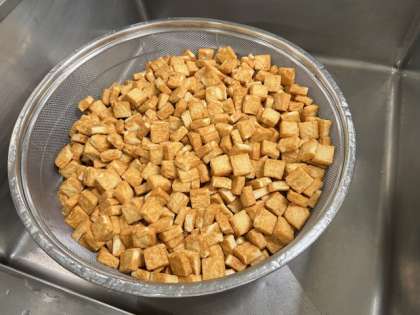 今日はさごしのおろしじょうゆがけ、含め煮、牛ひじきそぼろになります。お昼の給食に向けて調理が進んでいます!楽しみですね!