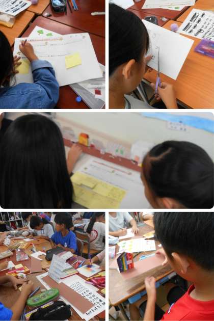 最後には、ロッカーの上に並べて発表をしました。どの班も夢のある素敵な町になっていました。子どもたちも「たのしかった!」「もっとやりたかった。」と言っていました。