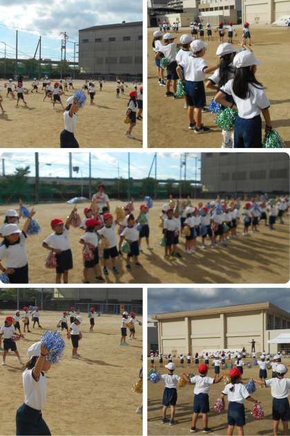 今日から、どの学年も実際の衣装を着たり、グッズを持って練習していました。3年生はキラキラのスティックを持って踊ります。ダンスが揃っていて、とてもきれいな演技でした。1年生はポンポンを持って元気いっぱいのダンスでした。