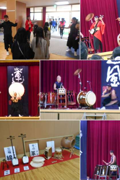 和奏ユニット「蓮風〜RENPU〜」に来校していただきました。太鼓や三味線のすばらしい演奏を聞かせていただきました。とても迫力ある演奏に子どもたちも楽しんでいる様子が見られました。