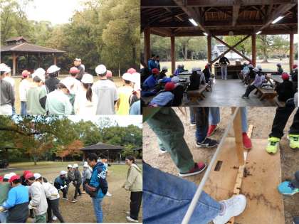 出発式からバズに乗車し、大阪府和泉市にある大阪市立信太山青少年野外活動センターに向かいました。到着後は火起こし体験、カレー作りに入りました。