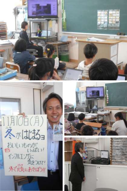 校長先生から、保健室の先生の紹介がありました。さらに、冬の味覚「カニ」についてのお話がありました。カニの漁がはじまり、なんと初競りでは、1匹「180万円」もしたそうです。みんな、興味をもって聞いていました。