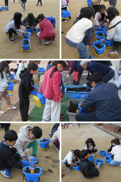土を入れてもらって、大切そうに植えていました。寒い日が続きますが、水やりを忘れずに育てていきましょう。何色の花が咲くか、とても楽しみですね!