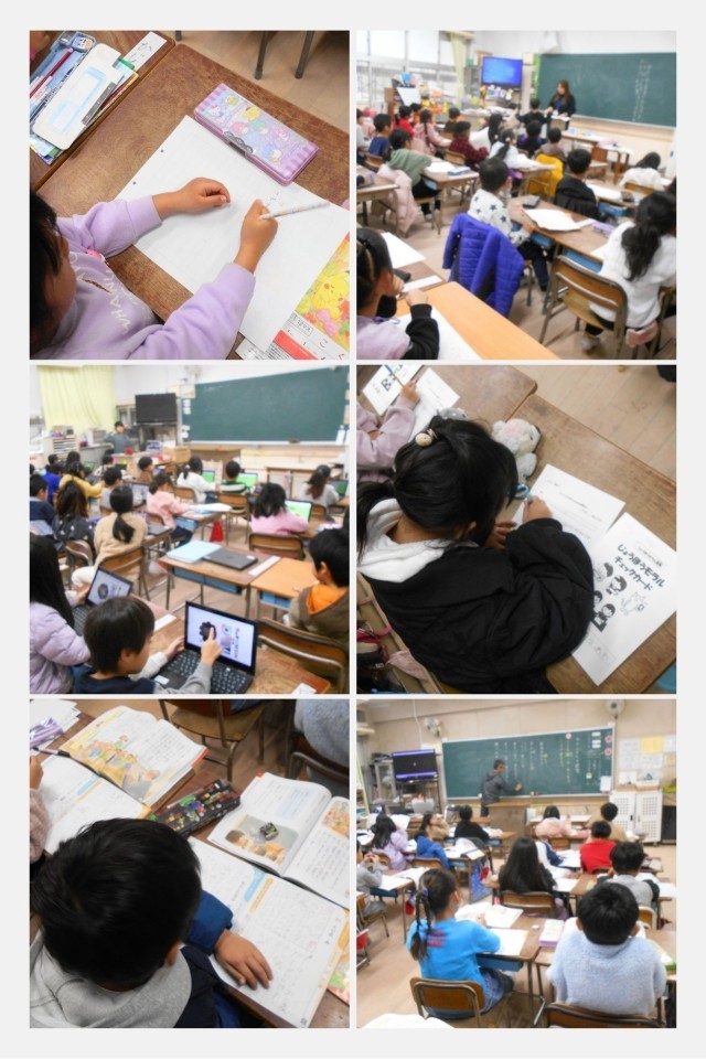 1年生は、生活をふりかえって「がんばったこと」を作文していました。また、2年生は、道徳や情報モラルについて学んでいました。どの授業もたくさんの手があがって、積極的に学ぶ姿勢が見られました。