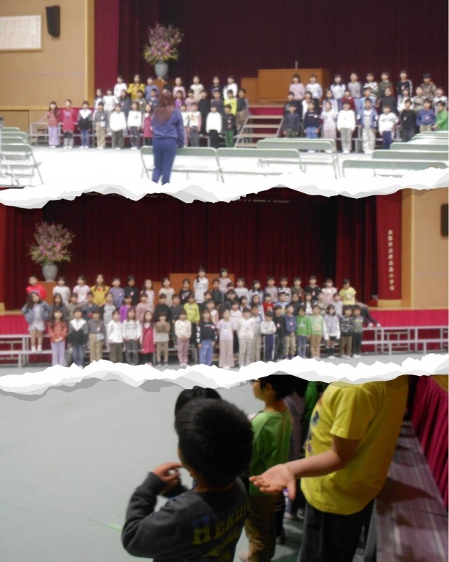 今日は1年生が4月の入学式にむけて「お祝いの言葉」の練習をしていました。新1年生に新北島小学校の楽しいところや良いところを知ってもらうために、一生懸命に練習しています。「友だちになるために」を手話をして大きな声で歌っていました。