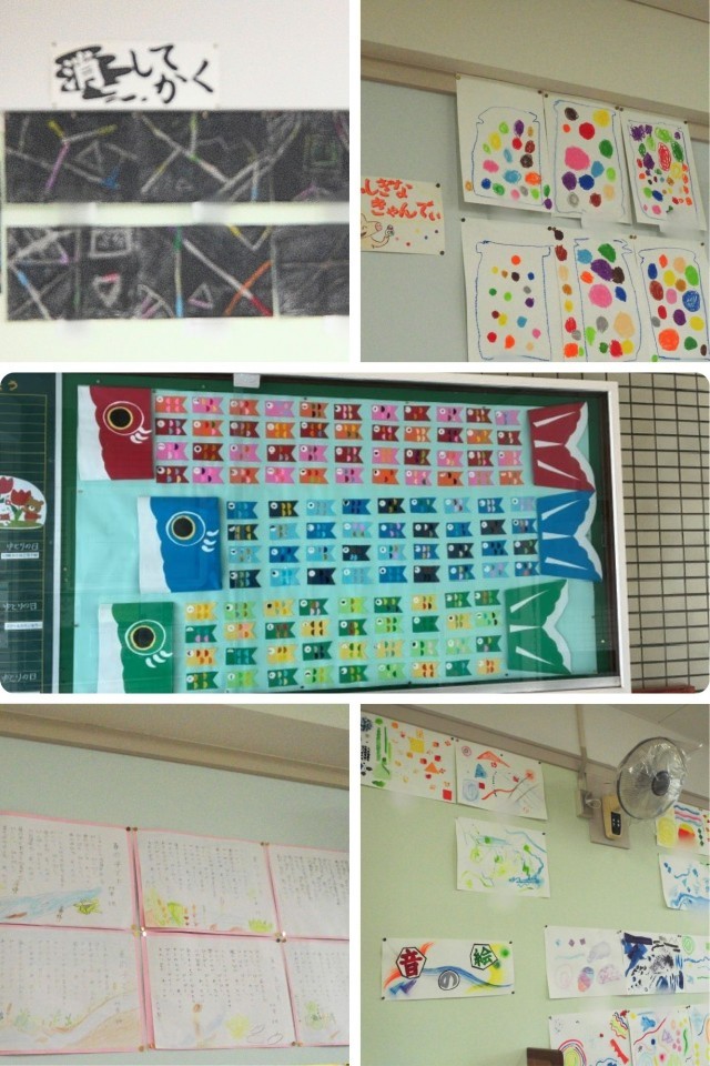 玄関に大きなこいのぼりが掲示されました。他にも廊下や教室にみんなの素敵な作品が掲示されています。