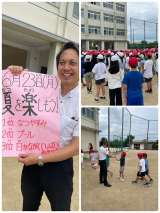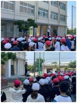 今日は、とても暑かったので日陰に集まって朝会をしました。 校長先生は金曜日にオ...