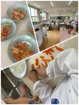 6年生が調理実習を行いました。 「野菜いため」を作りました。玉ねぎ、にんじん、...
