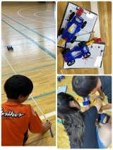 体育館を使って3年生が実験に取り組んでいました。 ゴムをいろいろな長さに伸ばす...