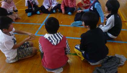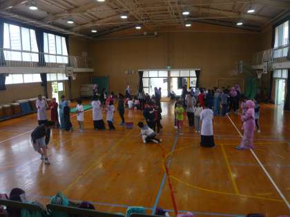 日本の遊びに続いてマレーシアの遊びの交流です。両国の子どもたちは楽しんで遊びに夢中になっていました。遊びの後は、給食の時間です。マレーシアの児童は2年・4年・6年の各教室に分かれて、昼食を一緒に食べました。マレーシアの児童はお弁当です。言葉は通じませんが、子どもらしい柔らかなやさしい雰囲気で楽しく食事をしていました。
