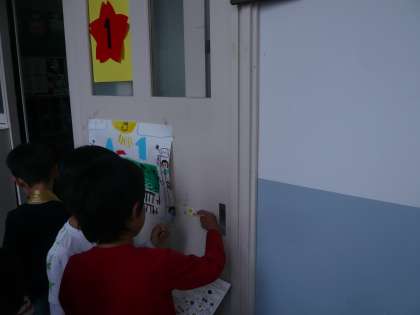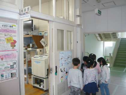 4月24日(水)、1年生と2年生はグループで学校探検をしました。職員室や多目的室など主要な場所をグループで協力しながら探検していきました。目的の場所を見つけるとシールを張って楽しい活動でした。2年生は1年生を上手にリードして学校内を巡っていました。