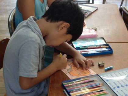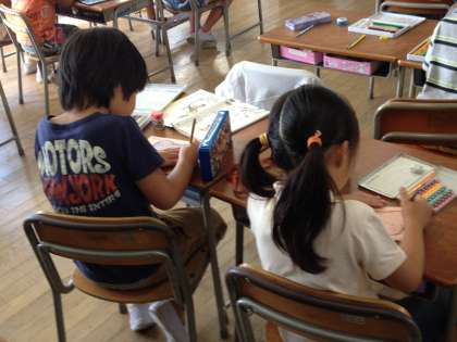 2年生は、敬老のお手紙を作っていました。日ごろから、お世話になっている地域のお年寄りに感謝とご長寿をお祝いする言葉を書いていました。きれいに色をつけて、素敵になカードに仕上がっていました。
