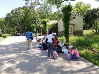 5月15日、3年生4年生は緑地公園に春の遠足に行きました。全員参加で、予定より早く緑地公園に着きました。絶好の天気で、電車のマナーもよかったです。
