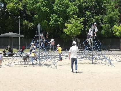楽しみにしていた遊具広場に着きました。たくさんの遊具があり、たっぷりと遊びました。