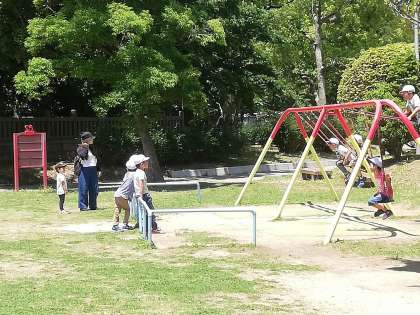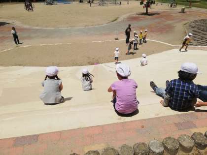 遊具の一番人気は大きな滑り台です。ルールを守って安全に滑っていました。