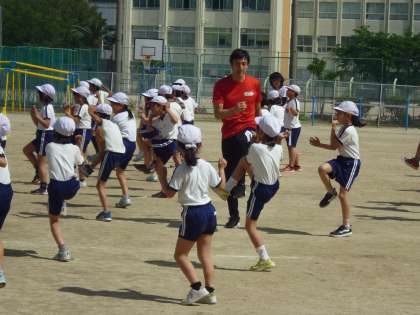 3年生は、区役所の取り組みでトップアスリートを招いて陸上競技(走行)についての授業をしていただきました。トップアスリートは2008年北京オリンピックで4人×100mのリレー競技で銀メダル(当初は銅メダル)を獲得した朝原宣治氏です。メダリストから指導をしていただき、大変有意義な体験になりました。なお、この授業は3年生に対して今年度はあと3回予定しております。