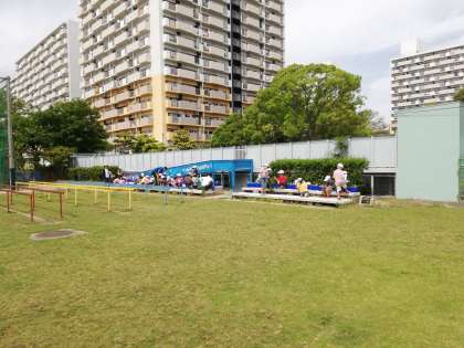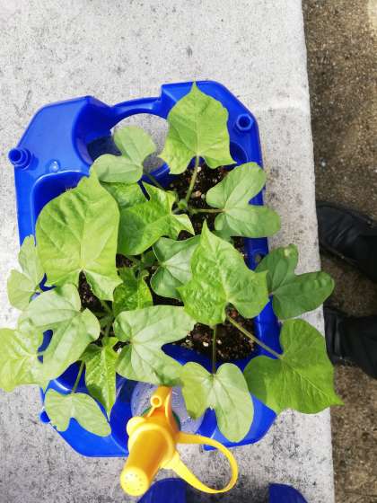 1年生が春に種を植えた朝顔が順調に成長しています。1年生は定期的に観察し、雨の日を除いて毎日、水やりをして大切に育てています。もうすぐつるが出てきて支柱を立てます。夏の花が楽しみですね。