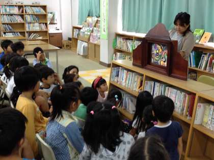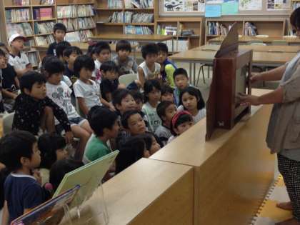 「読み聞かせが始まります!」という校内放送を耳にすると、子どもたちは急いで図書室に向かいます。みんな大好きな紙芝居の時間です。図書ボランティアのみなさんから、聞かせていただくお話の世界。秋は読書の季節でもあります。一冊でも多く、本を読んでほしいと思います。