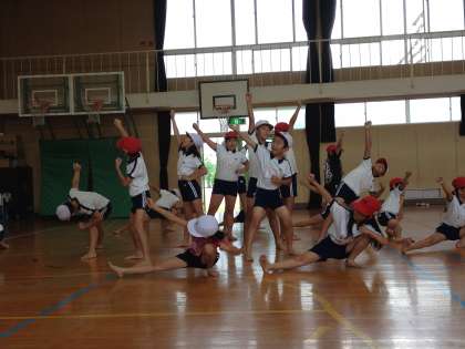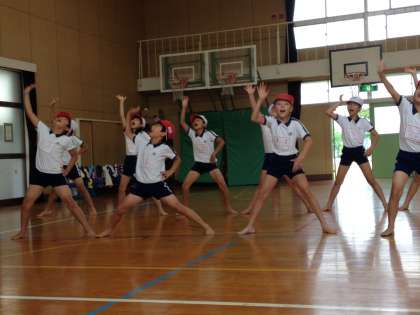 台風の影響で蒸し暑さがのこる体育館で、4年生は演技の手直しをおこなっていました。一生懸命、練習をしてきたソーラン、完成に近づきつつあります。