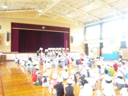 ゲームの次に児童会から「光キッズ展覧会」(9月11日〜13日です)の紹介があり、多くの作品を出してほしいことをアピールしていました。