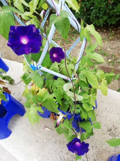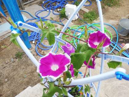 梅雨明けはまだまだ先のようですが、盛夏を待たずに1年生が植えた朝顔が花を咲かせています。毎日の水やり等、しっかり世話をしたことが実を結びました。