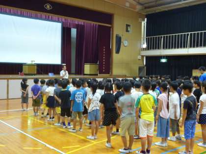 7月19日(金)、1学期の終業式がありました。学校長の講話、生活指導についての諸注意、プール開放でのきまり等、みんな真剣に聞いていました。