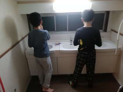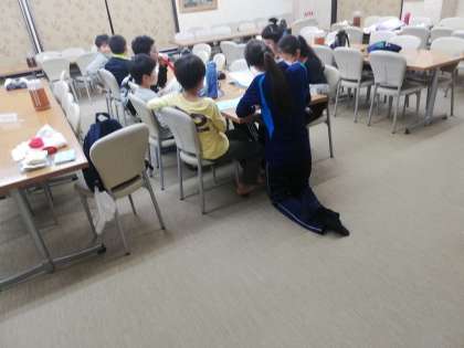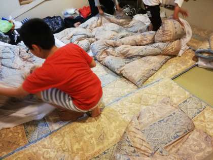 楽しいキャンプファイアを終え、今日の振り返りの室長会議です。部屋では就寝準備です。