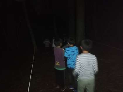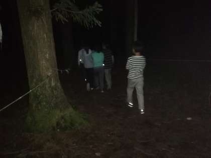 周りが暗くなるのを待って、肝試しの開始です。班毎に暗いコースを歩きます。平気な子、怖がってしまう子、様々でした。