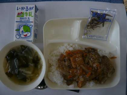 なお、今日の給食は「マーボーあつあげ丼」「中華スープ」「ミニフィッシュ」でした。