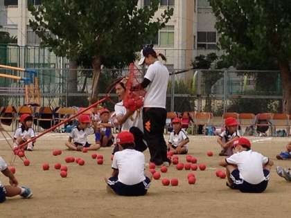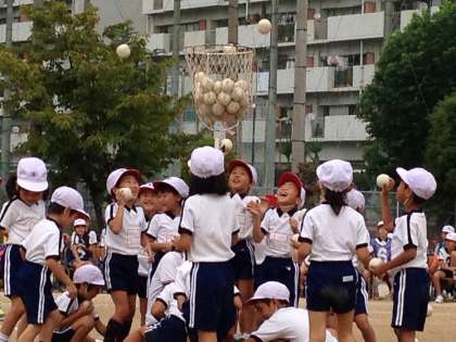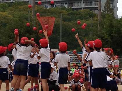 1年生の玉入れも、いい勝負でした。玉を数える時には、とっても元気な声を出していました。