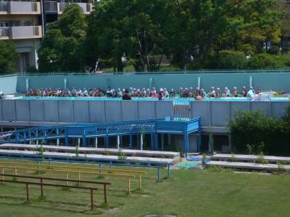 9月5日(木)、今日は大阪府で「大阪880万人訓練」が行われました。本校では訓練の時間に合わせて、机の下にもぐる訓練を行いました。プール水泳をしていた3年生と4年生は泳ぐのをやめて、プールから上がって整列をしました。