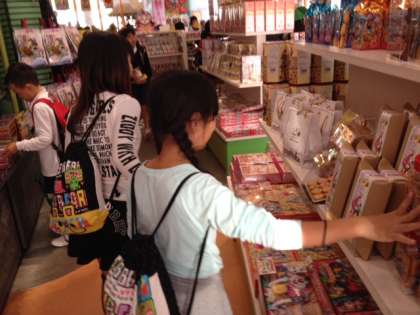 お土産を楽しむ女子、それをじっと待っている男子。毎年、見かける光景です。