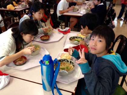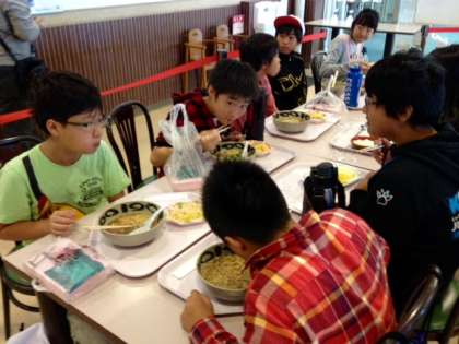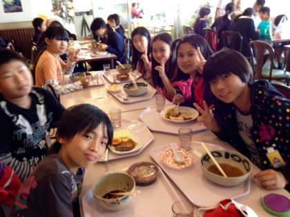 朝にホテルでたっぷり食べたのに、もうお腹がペコペコです。食堂にいくグループが続出です。