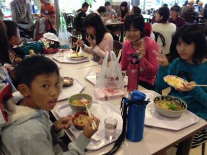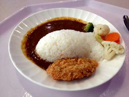 メニューは、ラーメンセット、伊勢うどん、カツカレー、ハンバーグの4種類です。カツカレーは、お魚の形をしています。