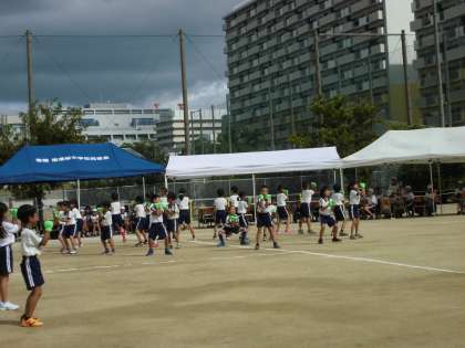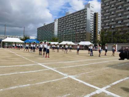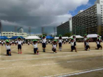 1年生と2年生の団体演技「まあスカッと 踊りましょう♪」です。マスカットを体で表現しました。かわいらしい踊りに観客もホッとし、笑顔になりました。