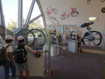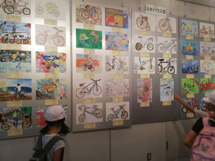次は自転車博物館では、自転車の絵画作品集がたくさん掲示していました。