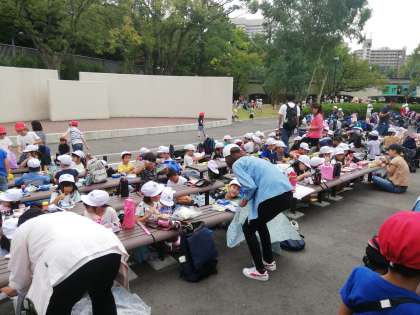 少し早いお弁当、おやつタイムです。みんな仲良く楽しい時間です。