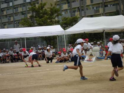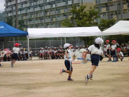 運動会の様子の紹介を再開します。1年生・2年生の「みこしだ!ワッショイ!」です。ボールがみこしからこぼれ落ち、苦戦することもありましたが、みんな懸命に競技していました。
