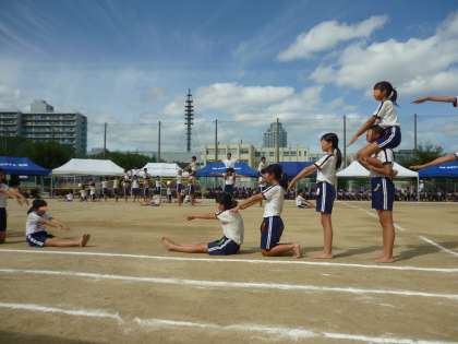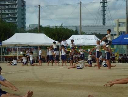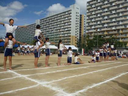 組み立て体操はクライマックスに近づいていきます。子どもだけでなく、観客も緊張感が高まっていきます。技は「山」です。