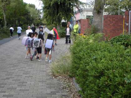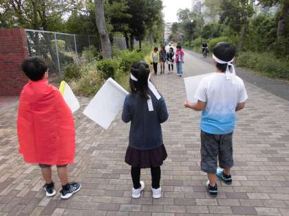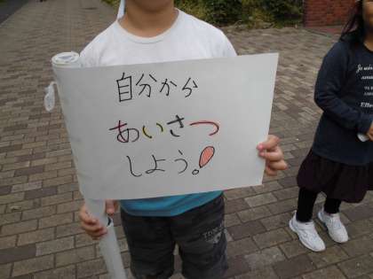 児童会の児童が、毎朝、正門や通学路に立って登校する児童に「おはようございます」と率先してあいさつをしていました。旗や服装を工夫して、あいさつの大切さをアピールしていました。この取り組みを受けて、児童集会の時に、生活指導担当の教員から「あいさつ」を積極的にするように話がありました。これを機会に、みんながこれまで以上にあいさつをしていってほしいと願っています。