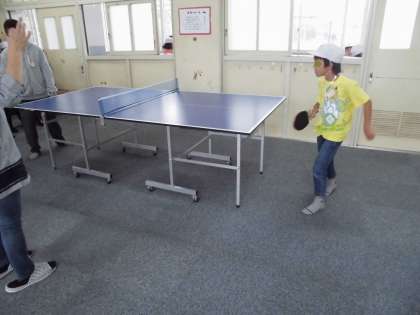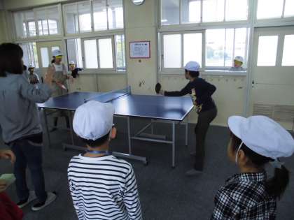 続いて「いきいき」活動の「卓球」です。卓球台を「いきいき」教室に持ち込み、グループ内の児童が対戦していきました。初めて卓球をする児童もおり、難しくも楽しいお店でした。