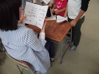 続いて、PTA地域体育厚生委員会の「テレパシーゲーム」です。これは保護者が出すクイズに答えるゲームです。難問もあり、子どもたちはグループで知恵を出し合って答えを導いていました。