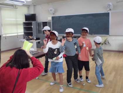 地域からです。「はぐくみネット」の方々による「ミニ玉入れ」です。担当の方が頭に乗せた玉入れのカップに新聞紙で作った玉を入れます。子どもたちは喜んで玉を投げていましたが、担当者の顔にも玉が当たっていました。大変失礼をいたしました。