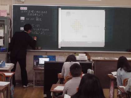 10月25日(金)、来週の29日(火)で実習を終了する教育実習生の研究授業を行いました。児童朝会で全児童にあいさつをし、3時間目に4年生の算数科で授業をしました。ICTを活用するなど、工夫をした授業を汗いっぱいでやり遂げていました。本校卒業生として、立派な教員になることを願っています。