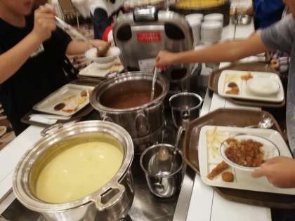 料理を選ぶことも楽しい時間です。カレーもあり、味は子ども向きです。