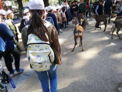 11月1日(金)、5年生は遠足で奈良公園に行きました。さっそく鹿のお出迎えです。