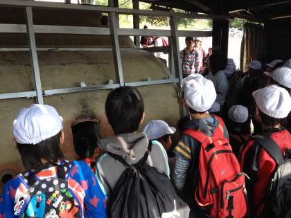 陶芸館には電気で焼く窯のほかに、薪をつかって焼き上げるのぼり窯があります。今日はのぼり窯まで見せていただきました。