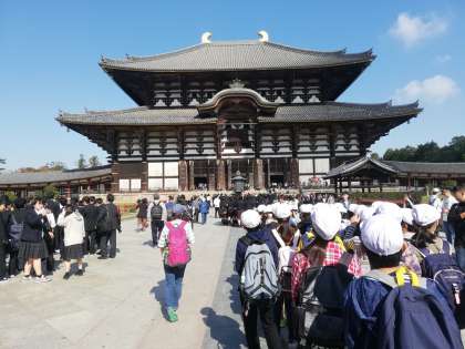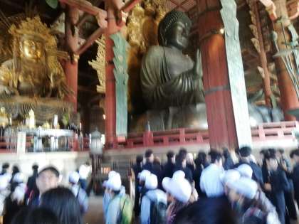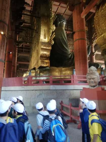 大仏殿に入りました。大仏様の大きさに圧倒されていました。
