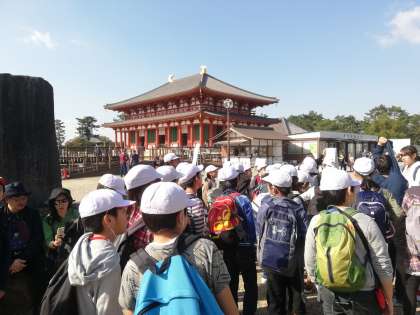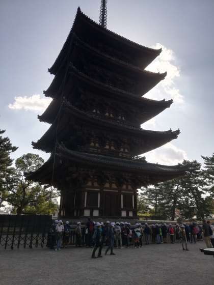 最後は興福寺に行き、国宝の五重の塔を見学しました。次に昨年300年ぶりに再建された中金堂を見て、帰路に着きました。電車内のマナーをはじめ、ルールをよく守って落ち着いた行動をとっていた5年生でした。